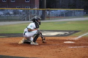 Sincere Ledbetter warming up the pitcher as he warms up catching.