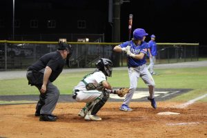 Laney player tried to get a hit off pitcher Zachary Steagall.