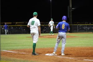 Linden Clemmons watches the runner on first to make sure he doesn’t steal second.