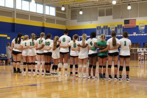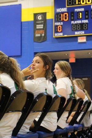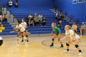 Senior Kayden Cupid, Senior Jalynn Sneed and Freshman Kelsey Lykins waiting for our side to serve the ball over
