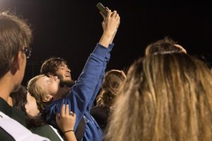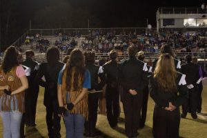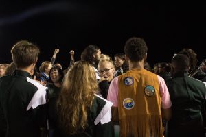Marching Trojans rush to the field after awards to celebrate together