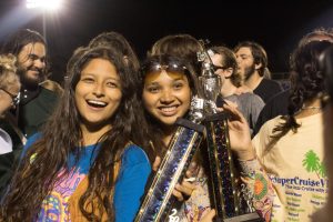 Ashley Dominguez and Jessica Pena celebrating their trophies together