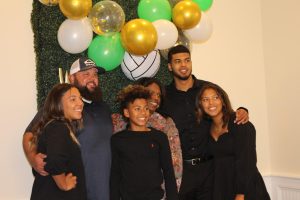 Sophomore Aubrey Brown standing with her family for a picture together.