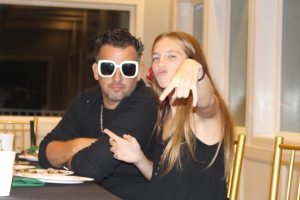 Aubrey Brown and Jenna Williams Smiling as they sit together at the Banquet.
