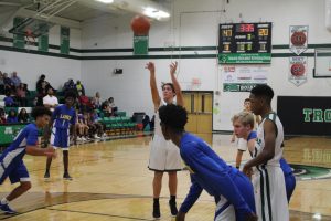 The Trojan JV basketball team was defeated in a hard-fought battle Friday night against Laney High School. Although the outcome was not what they wanted, Bryson McCall and JaQuice Daniels led the team on offense while Josh Russ and Johnny McAbee played well on defense. They will try to come back and win this coming Friday night against Topsail.