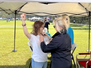 The event started promptly at 10:00 am. Each school was announced and everyone cheered to see who could be the loudest. The cheering competition was followed by speakers, one of which was the dean of Brunswick Community College. After he spoke, awards were given out to schools and people in the community.