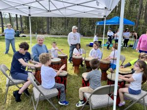 Town Creek Elementary students being taught how to play the bongo drums.