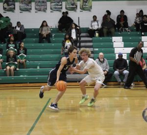 Freshman Josiah Borton, watching for his next move to get passes Hoggard.