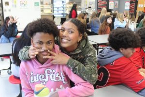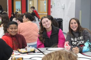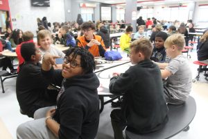 As they entered the cafeteria, the environment, though still inviting, was something new in comparison to the previous elementary schools the class had worked with, but still the students spread out and found new people to talk with.