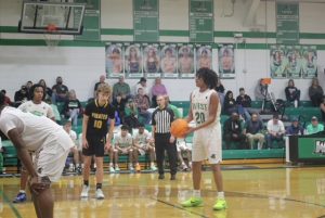 To start the game off cheerleaders take on the court as the players run out forming two lines on their side of the court to begin their warm-up routine. As time was ticking down and the players were practicing their layups, free throws, and defensive skills, the game was finally ready to begin.
