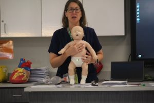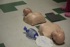 In addition to CPR, students also learn how to recognize the signs of cardiac arrest, like unresponsiveness or abnormal breathing patterns. They have extensive practice with the proper hand placement and rhythm during chest compressions using lifelike (and anatomically accurate) mannequins of babies and adults. These compressions help circulate blood and oxygen through the body.
