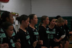 The gym buzzed with energy as both teams took to the court, warming up for the first 5 minutes with hitting lines. West Brunswick setters Tameya Thomas and Annabella Todd set the ball smoothly through the air, ready to be slammed down. Whether it was a cross shot or a line drive, the Trojans came out swinging. The Pirates are known for their strong swings and high blocks, which set the standard high for the defensive players in this match.