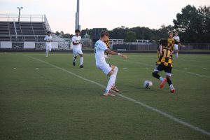 When the referee blew the whistle for halftime both of the varsity teams went on the field to shoot and pass the ball around with their teammates getting ready for the varsity game. During half time coach Elijah Berkemeyer gave a very motivational speech after a slow start for his players.