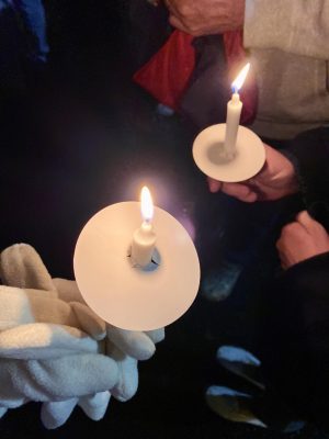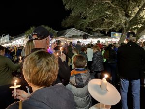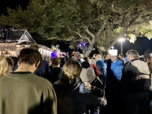 At six o’clock calabash started it’s annual Christmas parade and festivities near the waterfront. Although it was cold and sprinkling, local guest were able to enjoy every minute. The Calabash Tee Room provided Hot Cocoa, coffee, and cookies to make sure everyone stayed warm and refreshed. After watching the parade visitors headed toward Callahan’s storefront to see local singers, dancers, and Dr. Ernie and Laura Ward host the Christmas spectacular. Once the performances were over, West Brunswick’s Key Club handed out candles, which were to be lit once the singing of Christmas carols began. After a few songs were led, by local radio worker of 92.1, the large Calabash tree’s lights turned on. Pictures were taken and visitors were left to look around Callahan’s Christmas shop for the perfect ornament.