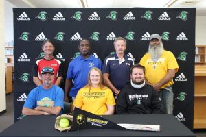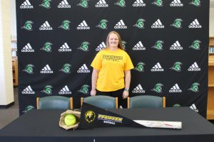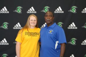 Today was a big day for Senior Gracie Griffin, she officially became a member of the Pfeiffer softball team. All her hard work on the softball field and in the classroom has paid off. Once a Trojan always a Trojan and Go Falcons!