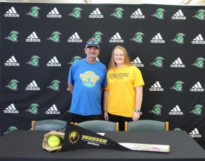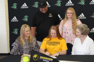 Gracie is signing her name to finally become a member of the Pfeiffer softball team!