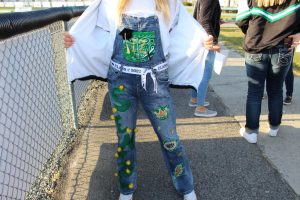 Madison Long, Maisy Morse, and Isleigh Sharpe, showing off their “senior jeans.”